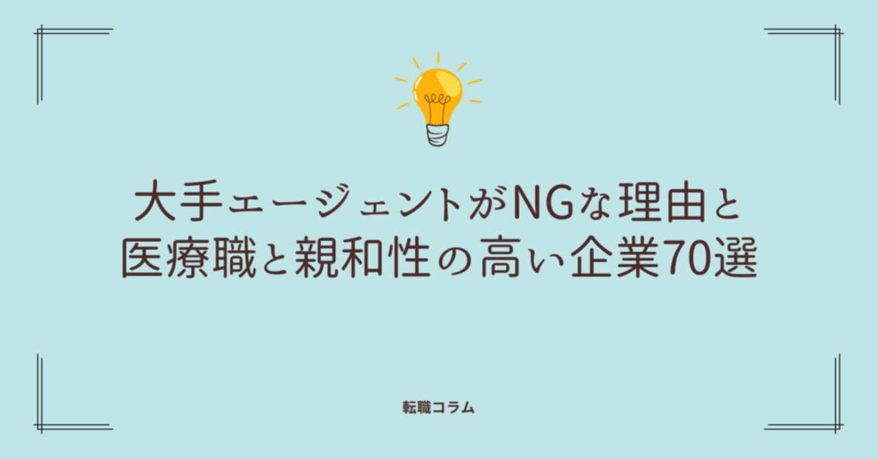 >>大手エージェントを使ってはいけない理由と医療職出身者と親和性の高い企業70選